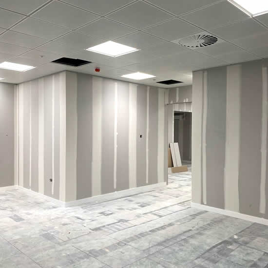 Our drylining systems are designed to create durable, smooth, and energy-efficient walls and ceilings. Using high-quality plasterboard and insulation materials, we provide the ideal solution for creating partitions and internal finishes in both new builds and refurbishments
